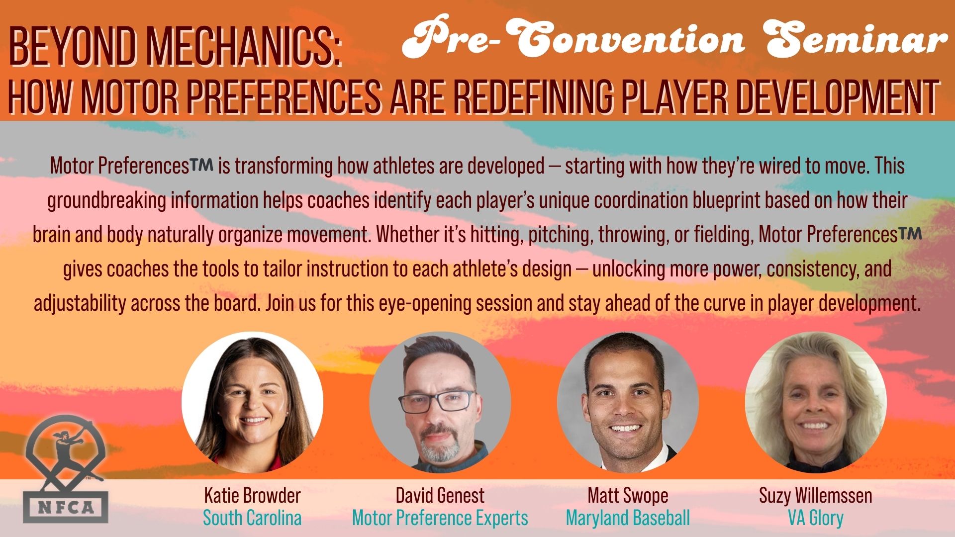 This pre-convention seminar, hosted at the NFCA Convention in Las Vegas, brings together leaders in coaching and player development. Katie Browder, Matt Swope, and Suzy Willemssen will share insights and applications that are reshaping how athletes are trained at every level.
